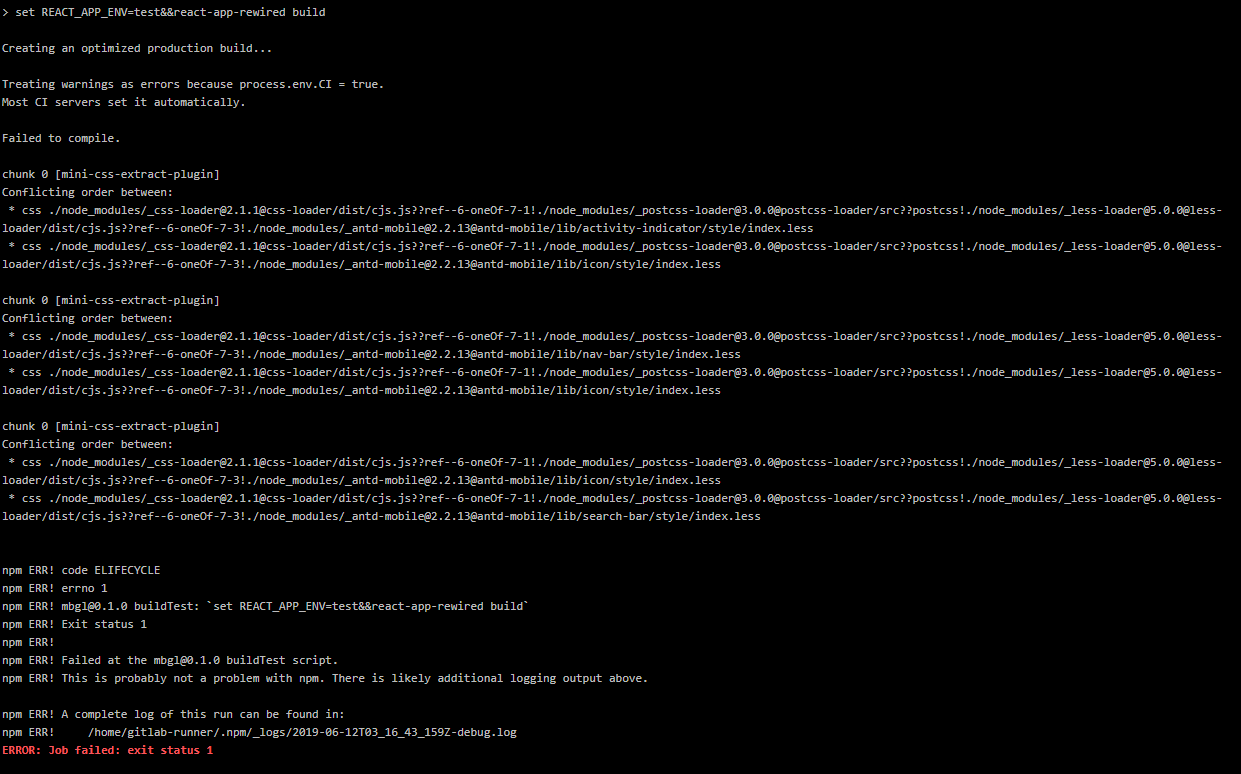 其实这个这个只是一个warning。但是由于环境变量(process.env.ci === true)。所以这个warning被转化成了error,导致了编译失败。一般的CI服务器会自动将这个这设置为true。
